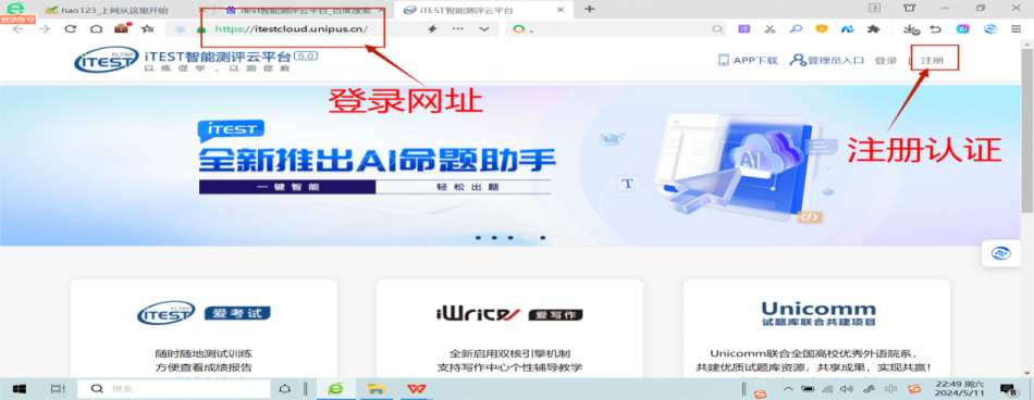 (注意:网址https://itestcloud.unipus.cn/需用网页版认证,无需通过客户端或APP进行)。
